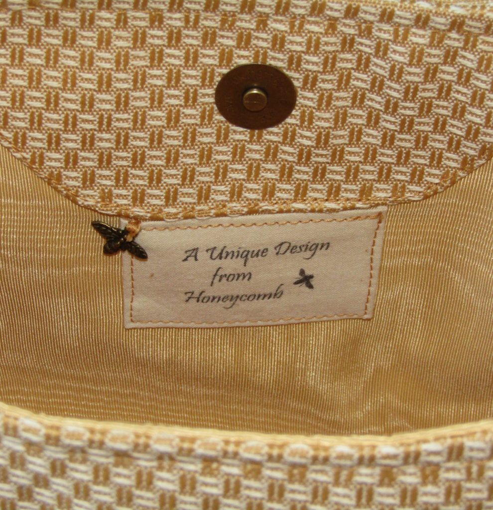 All my bags come with my personal label and hand sewn attached bee charm. You will also receive a hand-written details of the story behind your bag ( the fabric details and the inspiration attached to it).